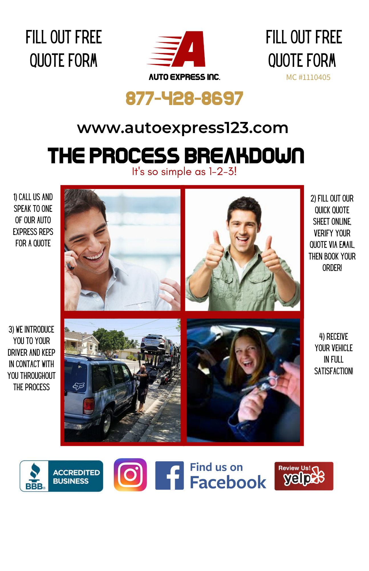 We do not engage in bottom-feeding practices by relying on the worst drivers posted on load boards who simply guess. As owners of trucks and dispatchers, we only work with drivers we know and trust, those who maintain our 5-star service and adhere to the etiquette of the auto transport business. If they have not hauled with us before or we cannot verify their credibility within our network, we cannot work with them. We can assure you the best service in auto transport, including car and heavy equipment vehicle shipping. For updates, follow us on Facebook and Instagram @autoexpress123